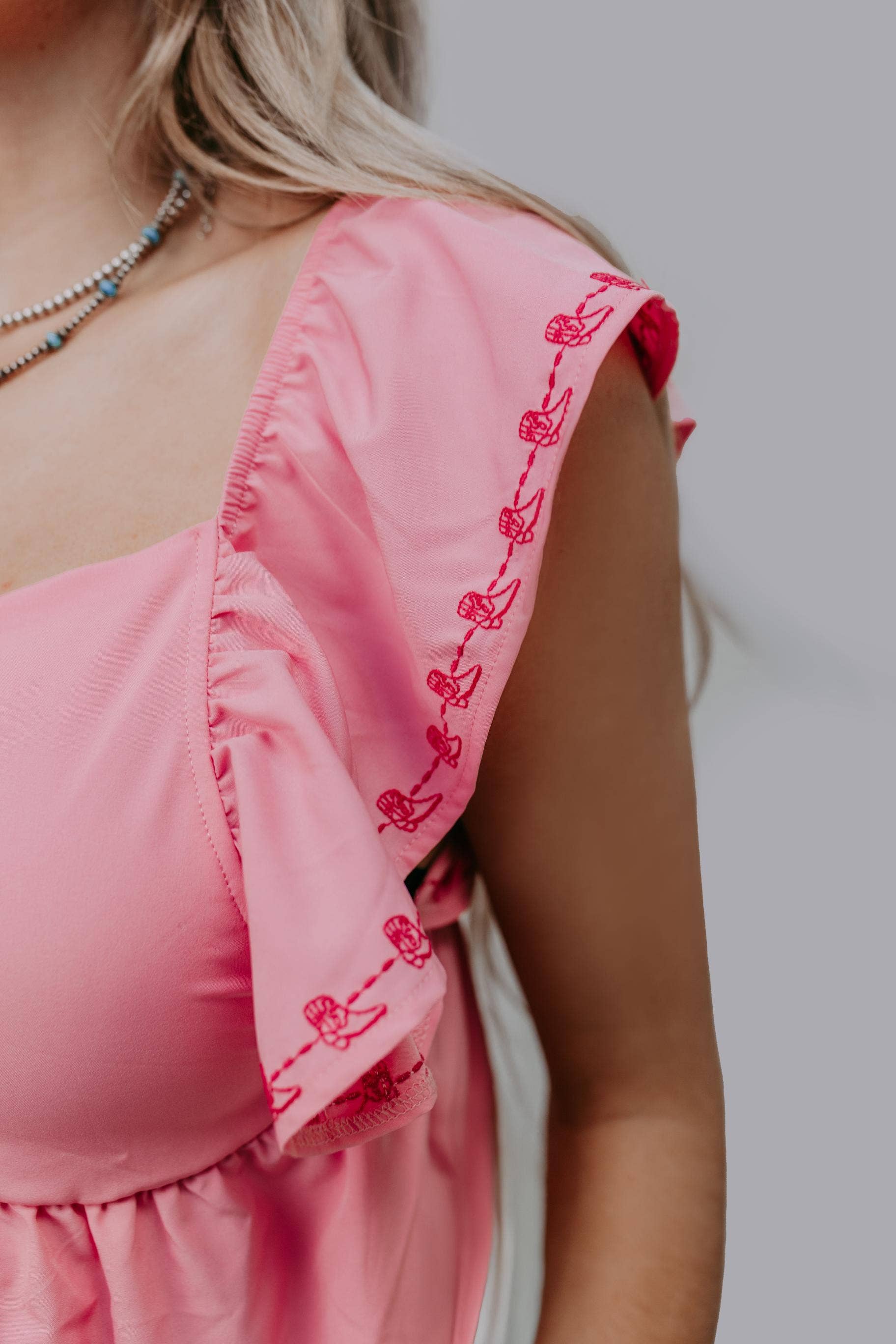 Elevate your spring and summer wardrobe with this blouse featuring stylish puff sleeves and a charming boot print. The standout back bow detail adds a playful, feminine touch to this versatile top.